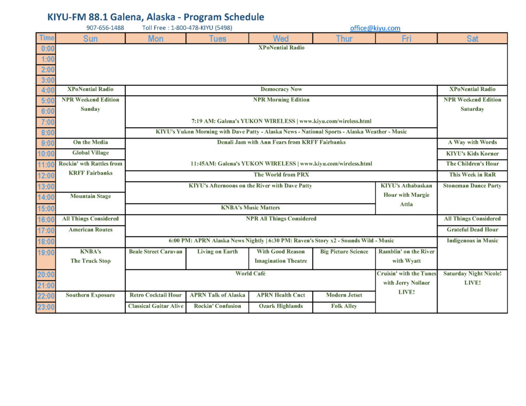 KIYU Galena / KRBY Ruby / KOYU Koyukuk / KNUL Nulato / KALG Kaltag
