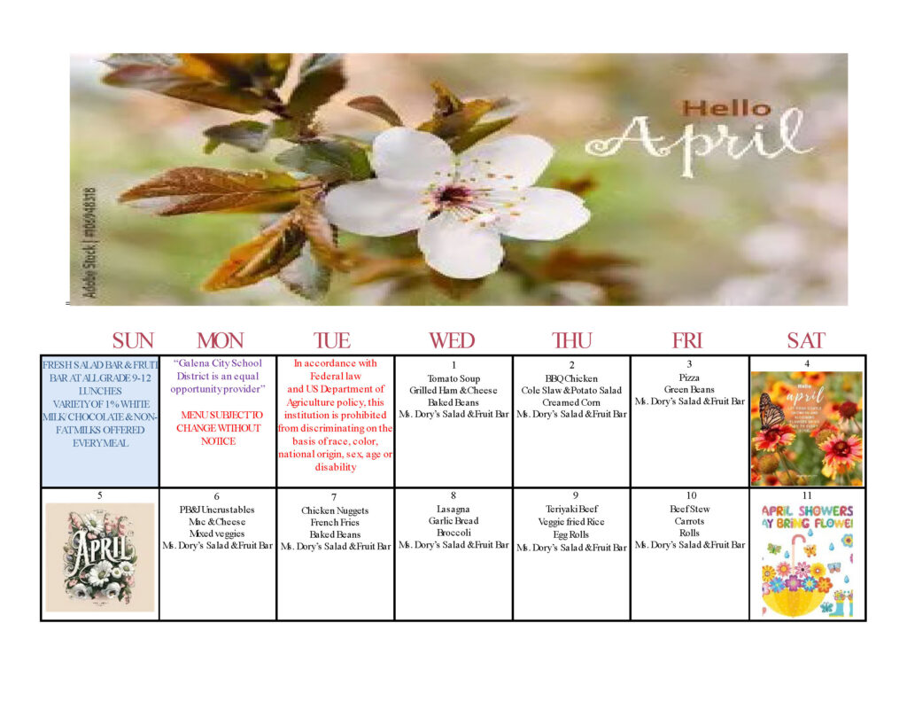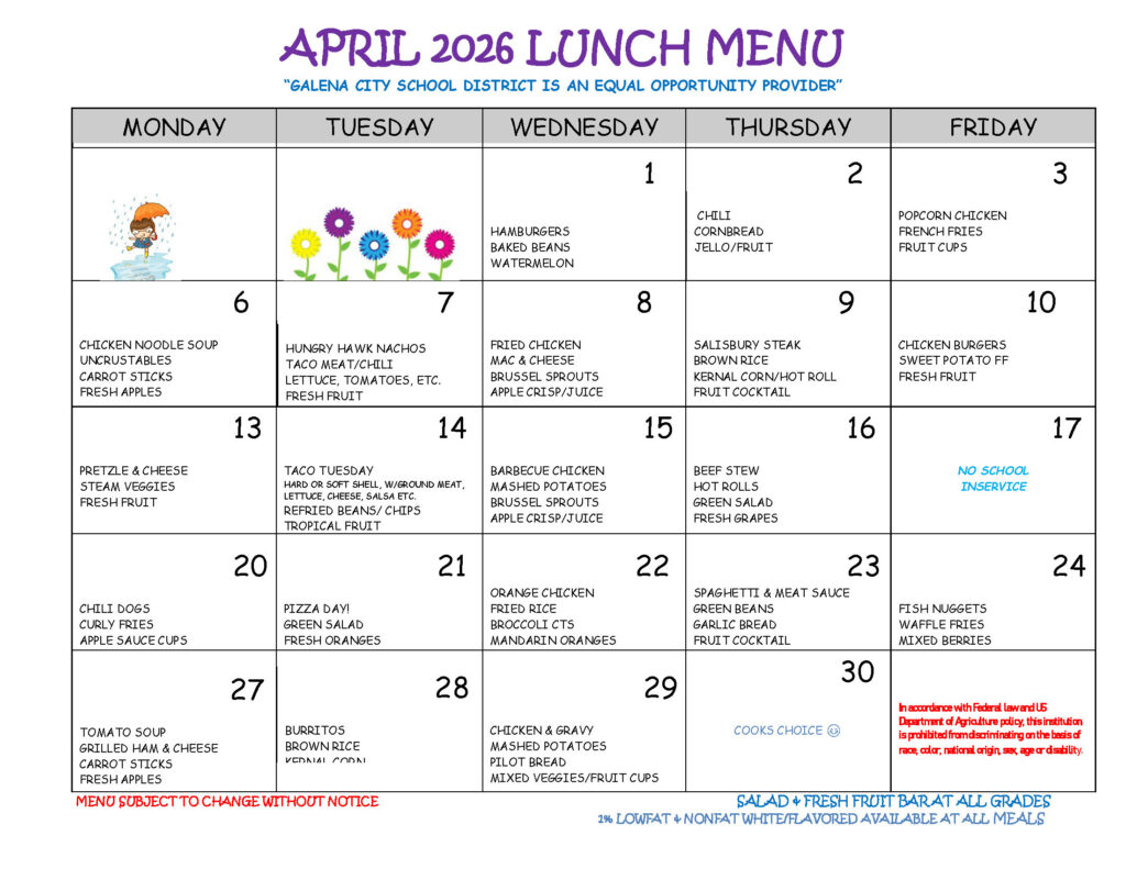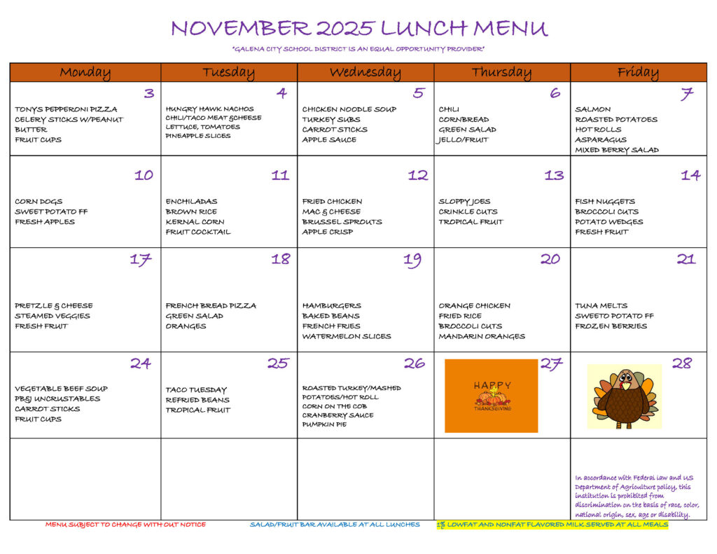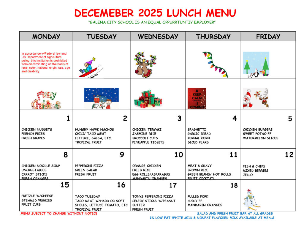 GALENA CITY SCHOOL DISTRICT SCHOOL MENUS