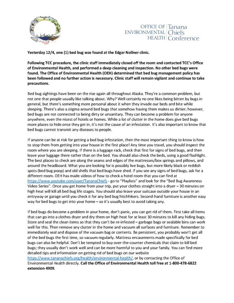 Tanana Chiefs Conference After-Hours Triage Nurse: 1-800-478-6682 (for times when clinic is closed or a local on-call provider is not available)