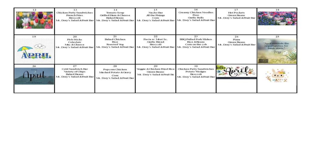 - Dr. Richmond- Dentist: April 6th– April 10th.