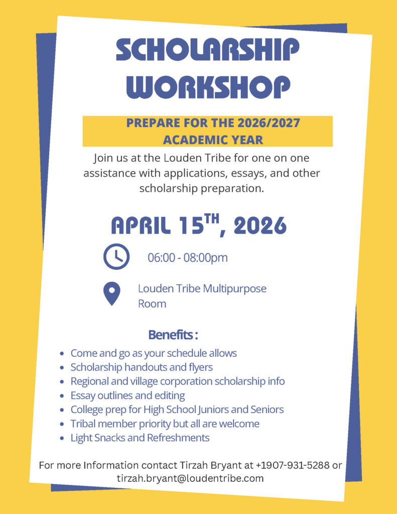 The Louden Tribe is now accepting applications for the Starlink Reimbursement Program. The grant funding this program is to increase reliable internet access in rural communities. All Galena resident households are eligible for up to $500 in Starlink equipment and mounting accessories plus a $100 flat fee for installation. Only one Starlink unit can be reimbursed per household and all equipment must have been purchased after September 14, 2022. Applications are due by June 30, 2026. Please call the office at 907-331-0347 or email us at office@loudentribe.com for applications or more information. You can also stop by the office during regular business hours Monday – Friday 8 am – 4 pm or visit https://www.loudentribe.org/starlink-reimbursement for Program Guidelines and applications. (2/3)