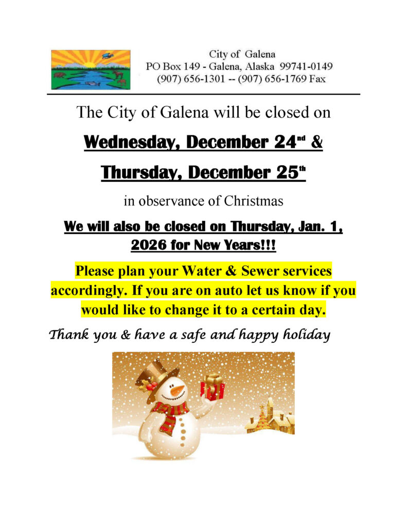 NEW – The Alaska Commercial Company will announce their coloring contest and stocking winners on Friday! Also, non perishable holiday food donations are requested for the local churches at the AC in Galena! (Updated 12/15)