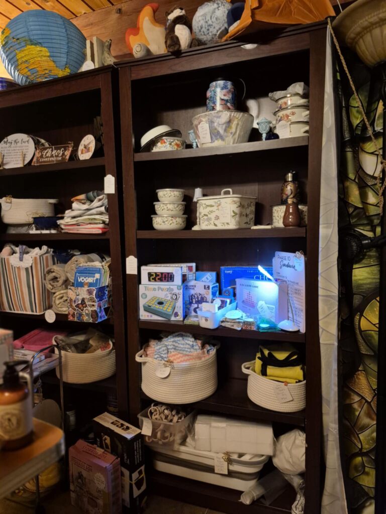 Our top categories…. ~Kitchenware ~Dorm/Home Decor ~Teacher’s Aids/School Supplies ~Books, including rare/out of print Alaskana ~Crafting Materials ~Sewing Notions ~ New & Vintage Jewelry ~Toys/Plushies ~Throw Blankets ~Games/Cards/Puzzles ~Bulk Items