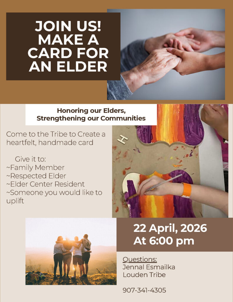The 2026 Denakkanaaga Elder and Youth Conference and Annual Meeting will take place in Fort Yukon on June 2-4. Louden is looking for Tribal Members age 55 and older that are interested in representing our Tribe as Delegate and Alternate. Interested individuals can call the office at 907-331-0347 or reach out to office@loudentribe.com by 4 pm on Wednesday, April 29th and the Council will appoint the Delegates at our next regular meeting currently scheduled for May 5th. (4/10)